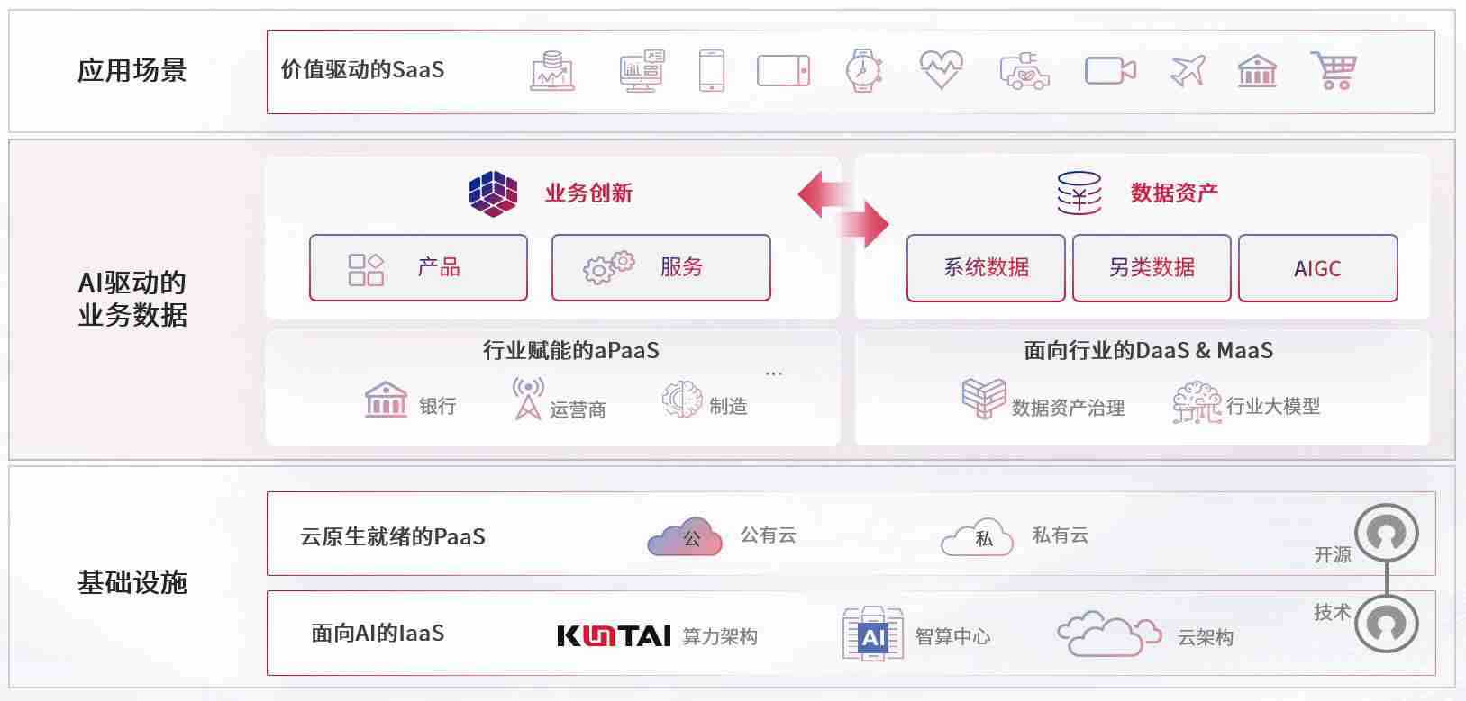数字时代,,围绕企业数字化转型的关键要素,,,,拼搏在线数码开创性的提出数云融合战略和技术体系框架,,,,着力在云原生、、、、数字原生、、、、AI原生和信创产业上架构产品和服务能力,,,为处在不同数字化转型阶段的快消零售、、汽车、、、、金融、、医疗、、、、政企、、、教育、、、、运营商等行业客户提供泛在的敏捷IT能力和融合的数据驱动能力,,,,构建跨界融合创新的数字业务场景和新业务模式,,,,助力企业级客户建立面向未来的核心能力和竞争优势,,,全面推动社会的数字化、、智能化转型升级。。